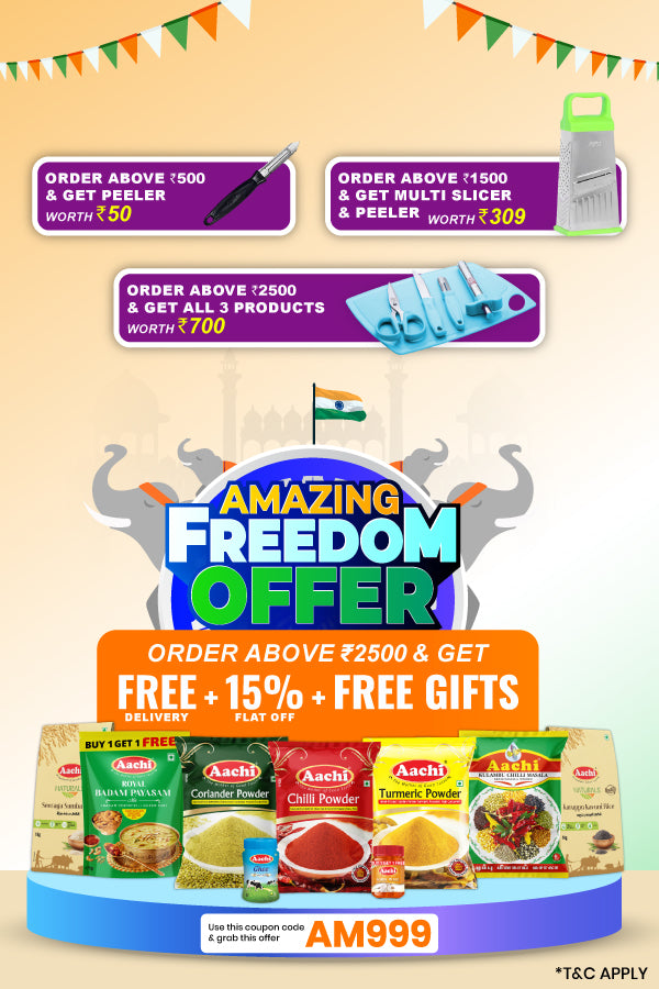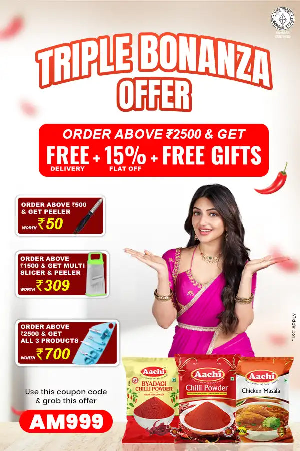 Aachi Masala, the pride of South India, brings you the richest and most authentic spices and masalas. Renowned for our unmatched quality and traditional flavors, we make every meal a celebration of South Indian heritage.